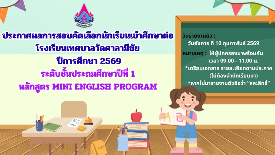 ยินดีต้อนรับเข้าสู่เว็บไซต์ โรงเรียนเทศบาลวัดศาลามีชัย ** โรงเรียนเทศบาลวัดศาลามีชัย ขอความร่วมมือผู้ปกครอง นักเรียน ผู้มาติดต่อราชกาาร กรุณาใส่หน้ากากอนามัยทุกครั้งที่เข้ามาในโรงเรียน