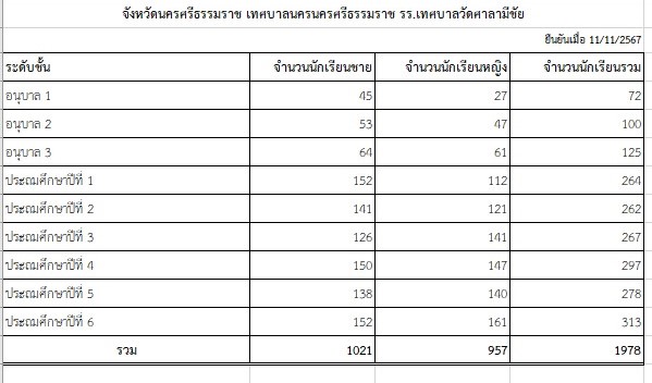 ข้อมูลจำนวนนักเรียน ปีการศึกษา 2567 (ณ 10 พ.ย. 2567)