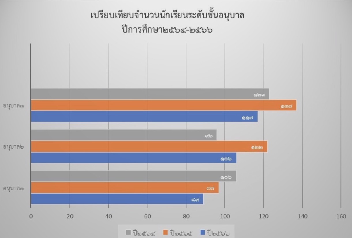 ข้อมูลจำนวนนักเรียนระดับปฐมวัย 3 ปีย้อนหลัง (ปีการศึกษา 2564-2566)
