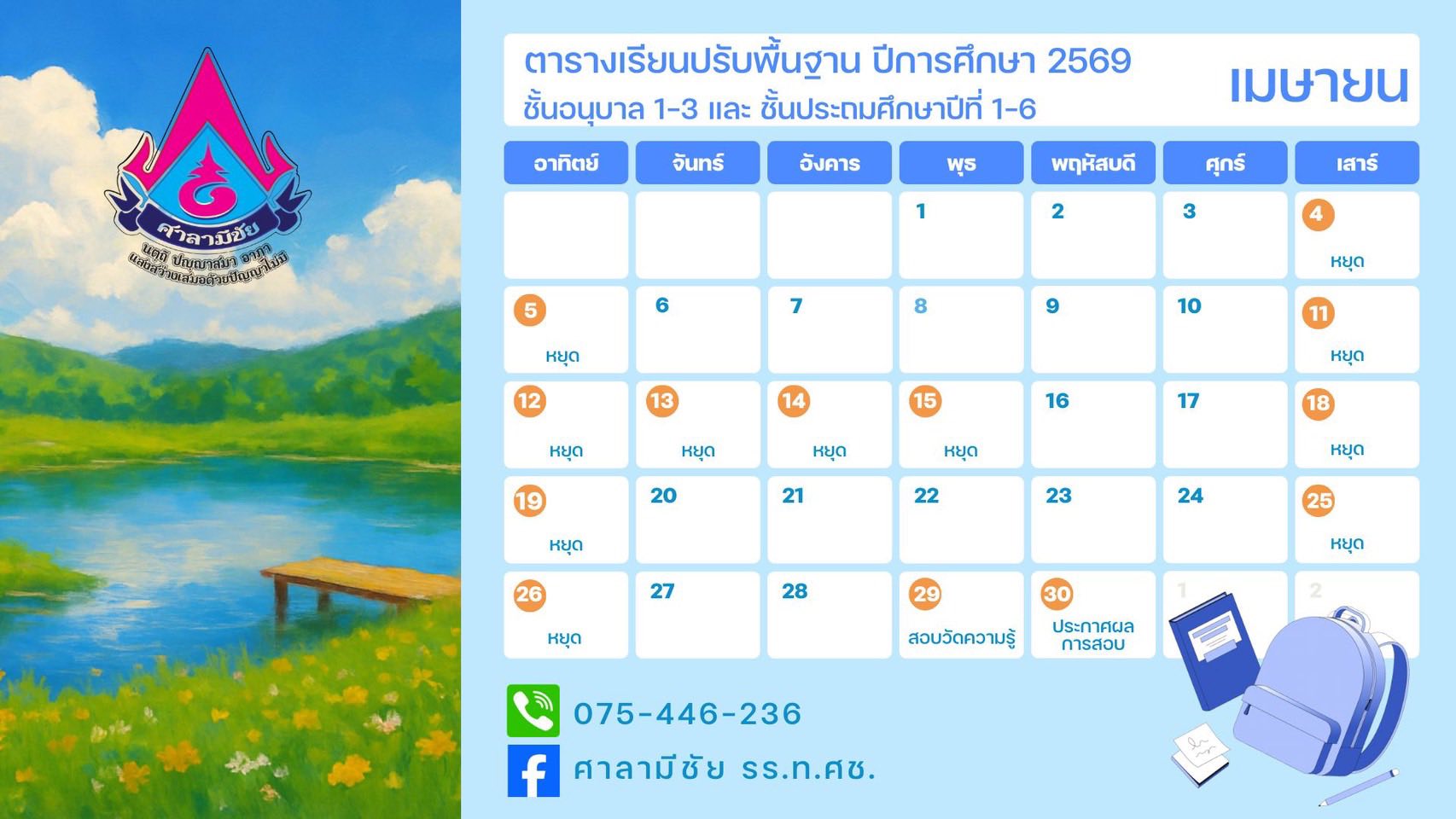 โรงเรียนเทศบาลวัดศาลามีชัย เปิดรับสมัครเรียนปรับพื้นฐาน เดือนเมษายน 2569