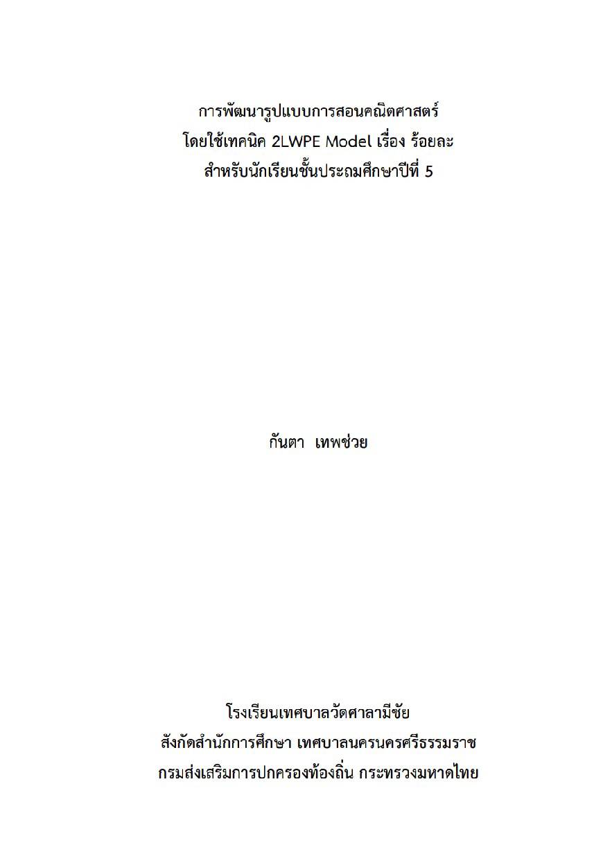 ชื่อผลงาน : การพัฒนารูปแบบการสอนคณิตศาสตร์ โดยใช้เทคนิค 2LWPE Model เรื่อง ร้อยละ สำหรับนักเรียนชั้นประถมศึกษาปีที่ 5